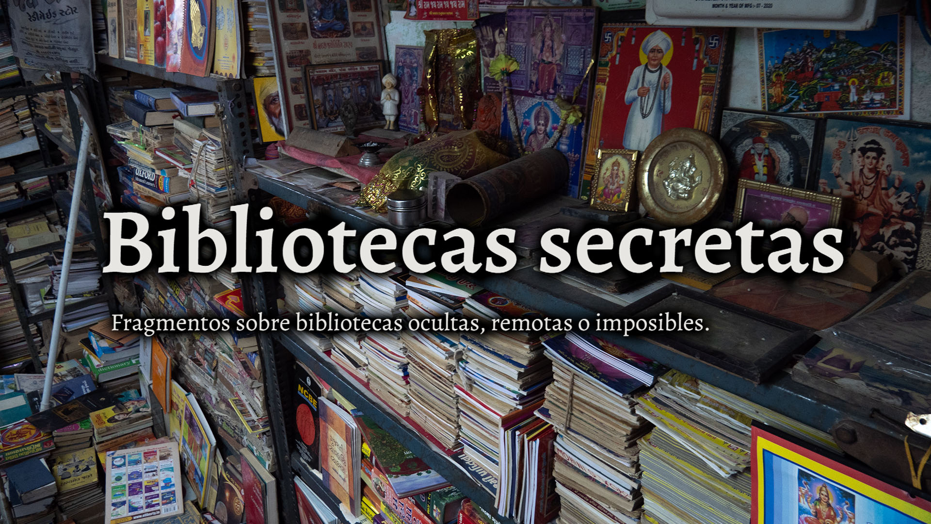 Bibliotecas secretas es una web-libro editada y traducida por nuestro colaborador Óscar Carrera, que recopila fragmentos literarios “sobre bibliotecas ocultas, remotas o imposibles”. Sus páginas abarcan épocas y lugares tan distantes como la Inglaterra isabelina, la España medieval o la Rusia zarista. Del Tíbet a la India, pasando por el Antiguo Egipto, la literatura pulp o los Mares del Sur, todos estos fragmentos tienen en común el que de algún modo se insinúa un libro, y éste es de algún modo invisible. La periodicidad de las entradas ronda lo semanal.