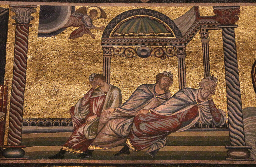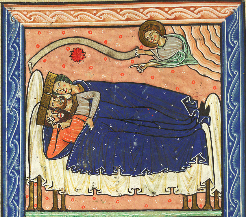 El relato del nacimiento de Jesús está lleno de imágenes simbólicas, y una de las más fascinantes es la del sueño de los Reyes Magos. La iconografía medieval representó este episodio en distintas miniaturas y frescos. La imagen consiste en los tres reyes acostados en la misma cama, mientras un ángel los despierta y les señala la estrella que deben seguir. Más tarde, empezaron a aparecer imágenes donde los reyes dormían vestidos o las camas se habían multiplicado, reforzando así la idea de que cada rey tenía su propio espacio de descanso. También, se introdujo de manera progresiva la negritud en el personaje de Baltasar, para simbolizar la universalidad del mensaje cristiano y marcar la diversidad de procedencia de los Magos.